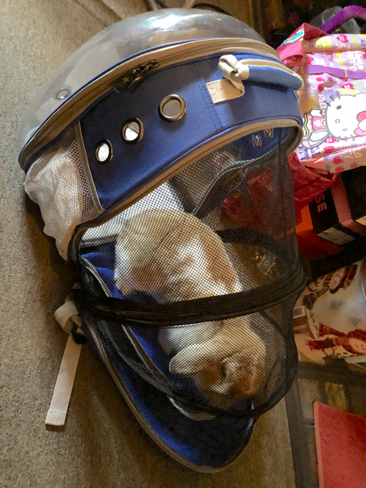 When I first put Floppy inside he started to chin every itch of it. I’m sure he enjoys it as much as I do. I do have to add that I don’t recommend letting them stay inside for long periods of time because it does gets hot. Just for like short walks outside or to the park.